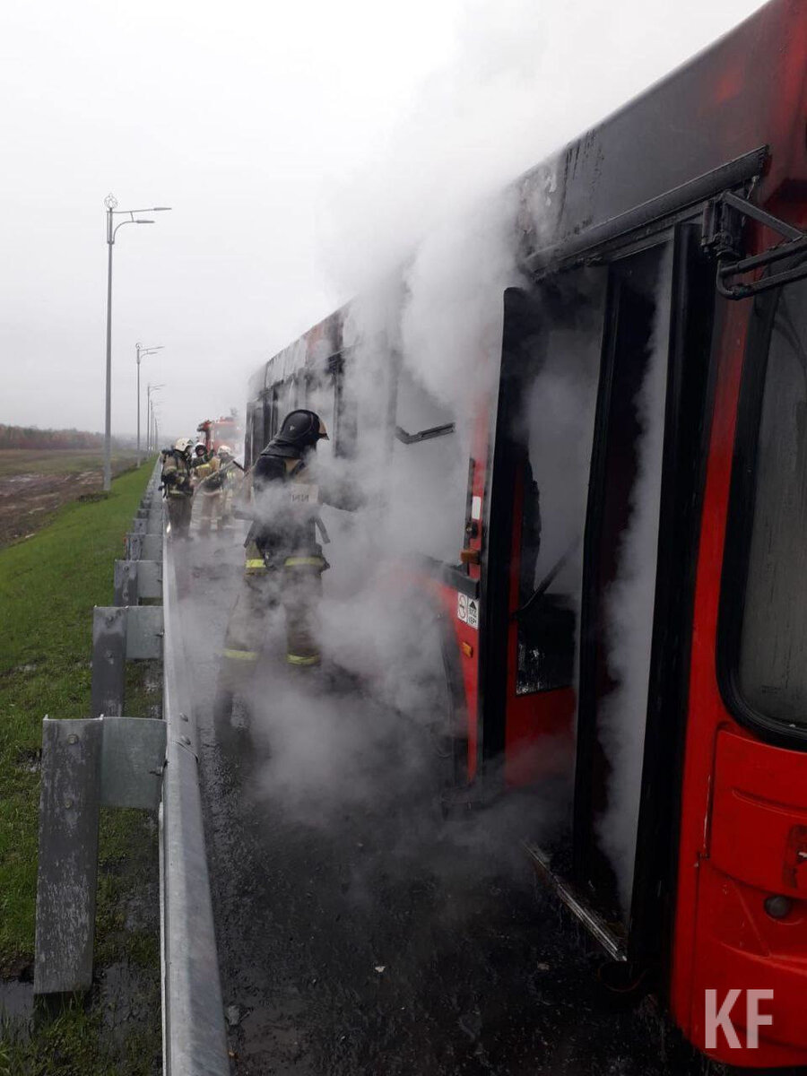На выезде из Казани в сторону международного аэропорта вспыхнул очередной «краснобус». Транспорт оказался пустым, но тушить его пришлось пожарным.