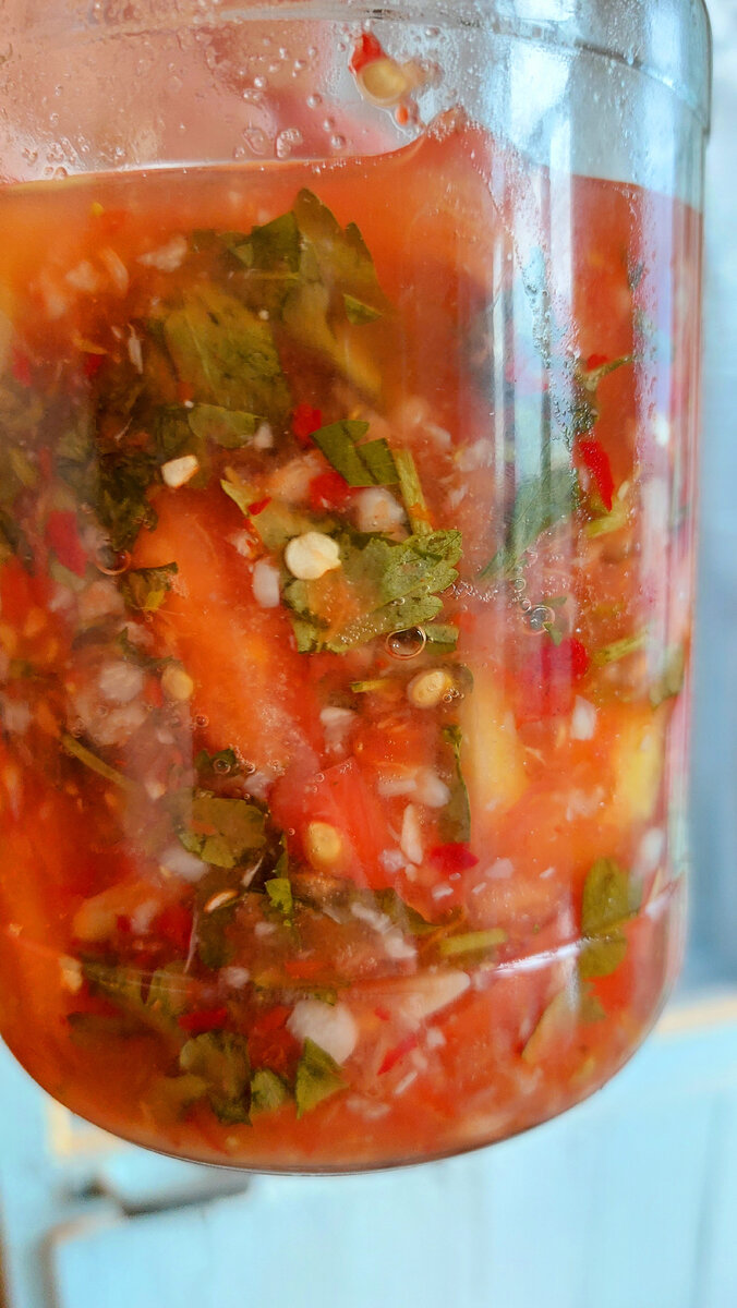 Всем большой привет! В этом году я практически весь закаточный сезон болела, поэтому почти всё пропустила. Но это не повод для грусти) У нас в Феодосии, по бульвару Старшинова, есть несколько овощных ларьков. Особенно мне нравится один, с хозяйкой Леной. Отличный ассортимент и качество. Вчера шла с капельниц, которые закончила, и увидела у неё салат Кобра. Что понравилось - идеальная чистота. Новые банки, новые крышки. Никаких потёков, старых плохо прилегающих крышек и тому подобное. Цена, сто двадцать рублей, согласитесь, это почти даром, по нынешним временам. Особенно для тех, кто не успел сделать заготовки сам) Сам салат - в меру упругие бурые и зелёные помидоры, в острой, чесночно - аджичной заливке, зелень. Вкусно, остро! Чудесно, как у лучших хозяек юга.