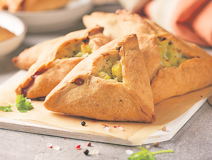Фото: Shutterstock Делимся интересными рецептами. Эчпочмак Татарский (и башкирский) печеный треугольник с мясом и картошкой. Мясо берите какое есть, кроме фарша (традиционно баранина, говядина или любая птица). НАДО (на 12 шт.): 400 г мяса · 2,5 стакана муки · 2 картофелины · 100 г сливочного масла · 1 луковица · соль · перец · 1/2 ч. ложки сахара · 1 желток · 2 ст. ложки сметаны · 1/2 стакана кефира · пучок укропа · полстакана бульона или еще 1 ст. ложка сливочного масла. ГОТОВИМ: 1. Смешиваем кефир, сметану, добавляем по 1/2 ч. ложки соли и сахара, добавляем растопленное масло и перемешиваем. #tp-4 {display: flex; justify-content: center; } #tp-4-mobile {display: flex; justify-content: center; } 2. В несколько приемов вводим просеянную муку. 3. Замешиваем мягкое, эластичное, почти нелипкое тесто. Убираем в холодильник на полчаса. 4. Делаем начинку: луковицу и укроп мелко шинкуем, картофель и мясо режем мелкими кубиками. Все смешиваем, солим и перчим. 5. Тесто раскатываем в колбаску,