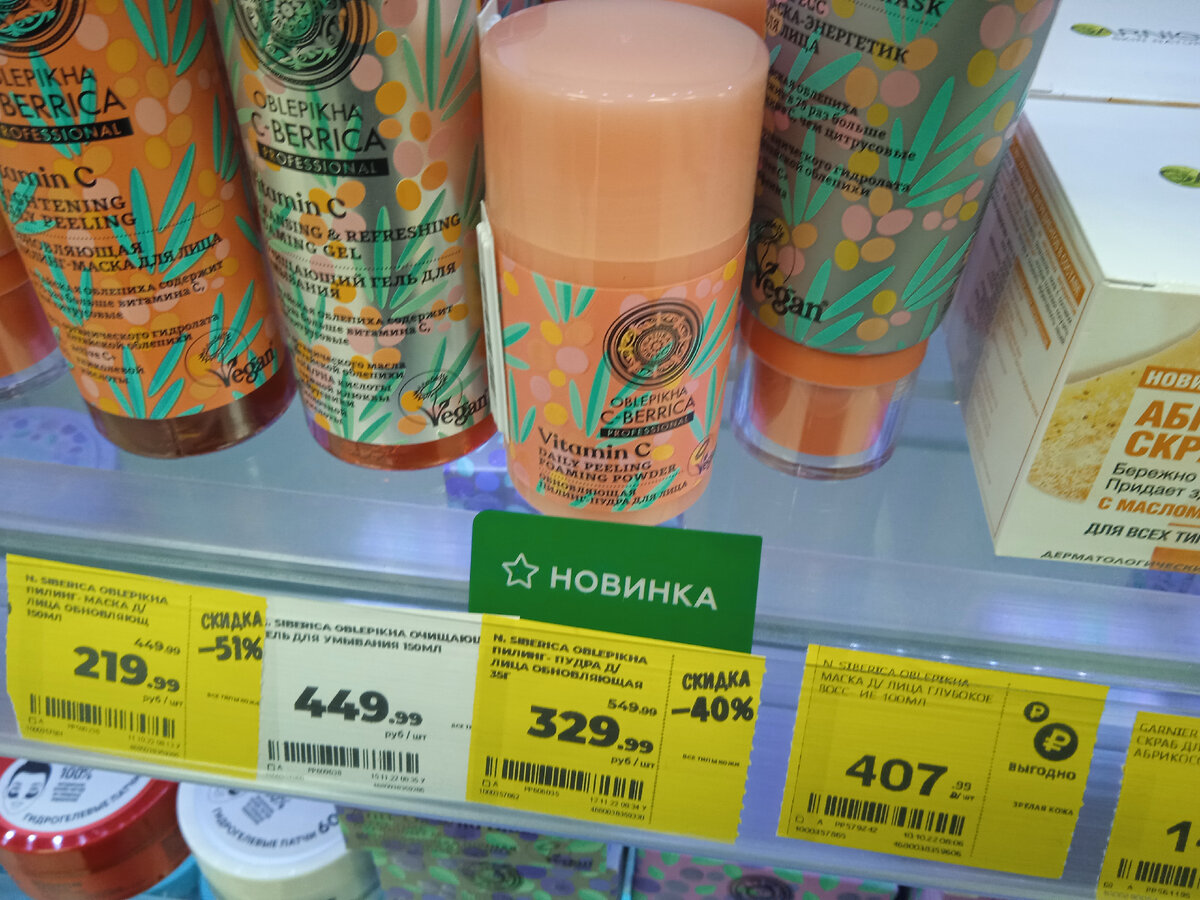 В этой статье я вам представлю товары-новинки магазина МАГНИТ КОСМЕТИК. На некоторые позиции косметической продукции есть отличные скидки. Пилинг - пудра для лица от N. SIBERRICA Очищает кожу лица и снимает остатки макияжа. В составе пудры - корень симбирского женьшеня. Цвет самой упаковки - оранжевый. А в составе пудры есть масло облепихи. Из новинок я ещё заметила крем для умывания из той же марки. В составе 8 экстрактов сибирских трав, в число которых входит и родиола розовая. Очень понравились новинки, упаковки которых в виде листа алоэ. Смотрятся прикольно. Их хочется потрогать. Пенка для умывания марки HOLIKA. Корейская косметика. Поменьше объемом - гель для тела. Есть также новинки на уход за волосами. Маска для восстановления волос. Корейская продукция Lador. Способ применения: нанести на вымытые волосы от корней до кончиков, держать 5-10 минут, потом смыть. Шампунь увлажняющий Lador Шампунь не содержит силиконы. Этой же марки сыворотка с кератином для секущихся кончиков воло