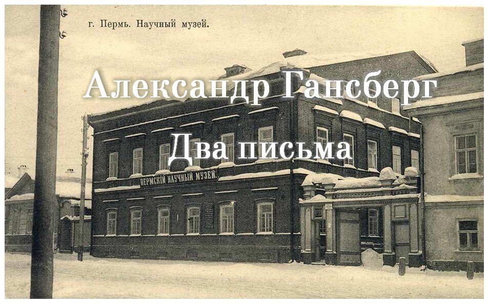 В адрес Александра Георгиевича Гансберга председателем совета Пермского научно-промышленного музея П.Н. Серебренниковым было направлено два письма.