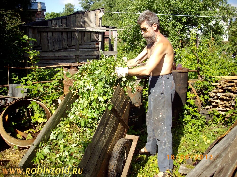 Начинаю выгребать траву из бочки. Запах стоит весьма приятный. Без всякой иронии. Пахнет сеновалом, правда тем его углом где из прохудившейся крыши на сено капала вода. Просто этот запах я помню с детства, не перепутаю.