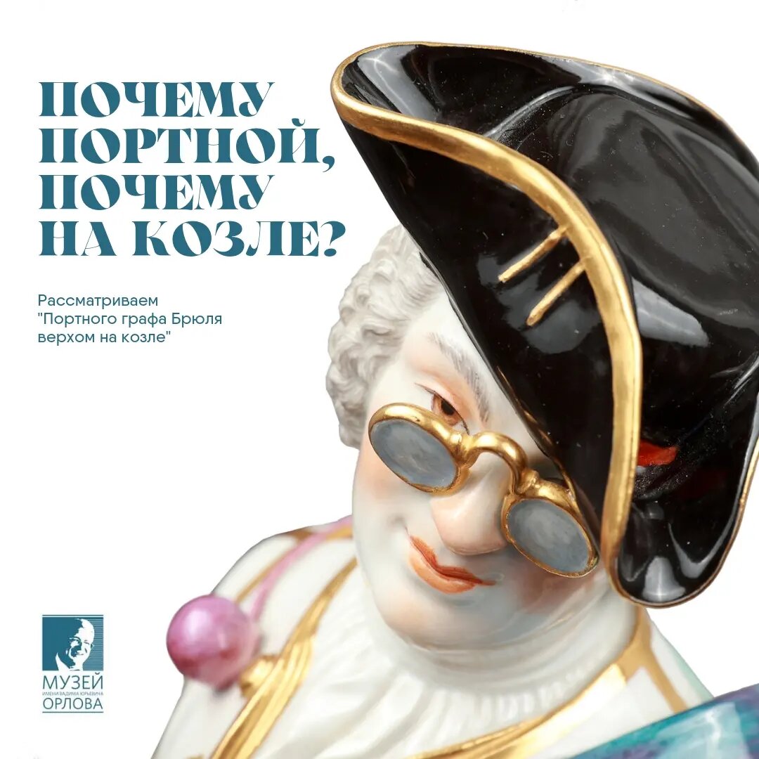 Недавно в европейский зал экспозиции Музея Орлова приехал более чем красочный экспонат - легендарная мейсенская скульптура "Портной графа Брюля верхом на козле", выполненная на рубеже 19-20 веков по модели И.Й. Кендлера 1737 года. Сюжет настолько необычен, вызывает столько вопросов, что нельзя не рассказать о нем еще разок, рассматривая фигуру в деталях. Итак, граф Брюль - министр саксонского курфюрста и управляющий Мейсенской мануфактуры во второй трети 18-го века - был записной франт. Своими нарядами он был обязан любимому портному, которого возвышал и баловал. Легенда гласит: однажды обласканный ремесленник настолько зазнался, что потребовал от Брюля для себя приглашение на королевский обед. Брюль выполнил невозможное требование в своеобразной манере, заказав мейсенскому скульптуру Кендлеру статуэтку портного - именно она и украсила королевский обед. Дабы подковырнуть зазнавшегося простолюдина, портного изобразили в карикатурной манере, имитирующей парадные придворные и королевски
