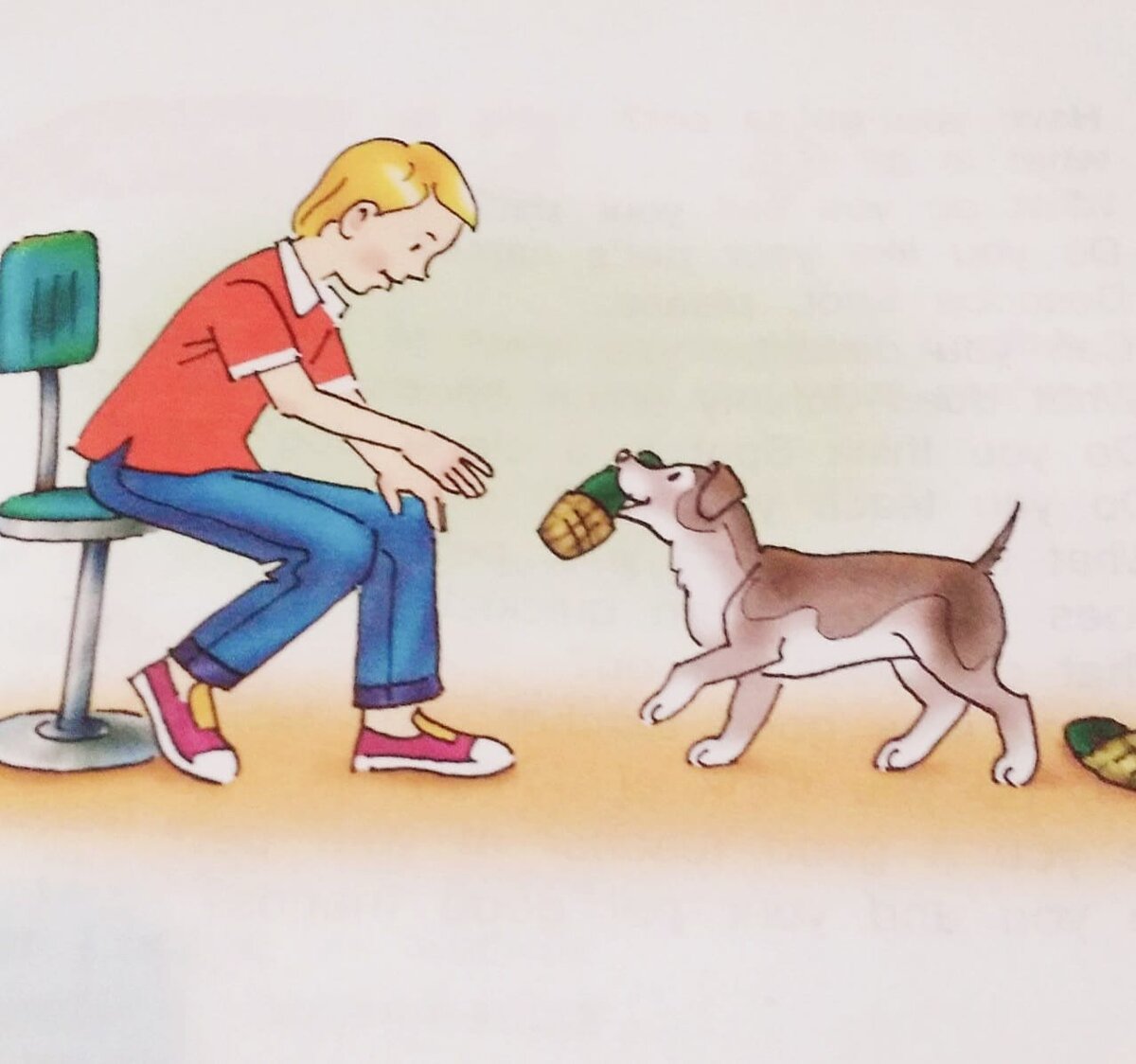 Глава 4 Then Johnny teaches Spot to answer to his name. Spot learns it very quickly, too, because he is clever. Johnny says: " Spot!" And Spot says: " Bow- wow - ow ", that is - "Hello!" Then Johnny teaches Spot to take, to give and to carry things. Johnny says:" Spot, give me my slippers!" Spot runs for Johnny 's slippers and gives them to Johnny with great pleasure. Johnny says: "Good dog!" Then Johnny teaches Spot to understand the words "come" and "sit". When Johnny takes Spot for a walk, he says: "Heel!" it's hard for Spot to learn this word , but soon he understands. After lessons Johnny talks to Spot. Spot can't understand words of course. But he likes to listen to Johnny. When Johnny is sad, Spot is sad, too; when Johnny is happy, Spot is happy, too. Johnny and Spot are good friends. Перевод Затем Джонни учит Спота откликаться на своё имя. Спот учится этому тоже очень быстро, потому что он умный. Джонни говорит: "Спот!" И Спот говорит: "Гав - гав - ав," это оз