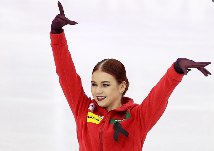 Саша Трусова с одинарным акселем занимает третье место в короткой программе на этапе Гран-При в Самаре.