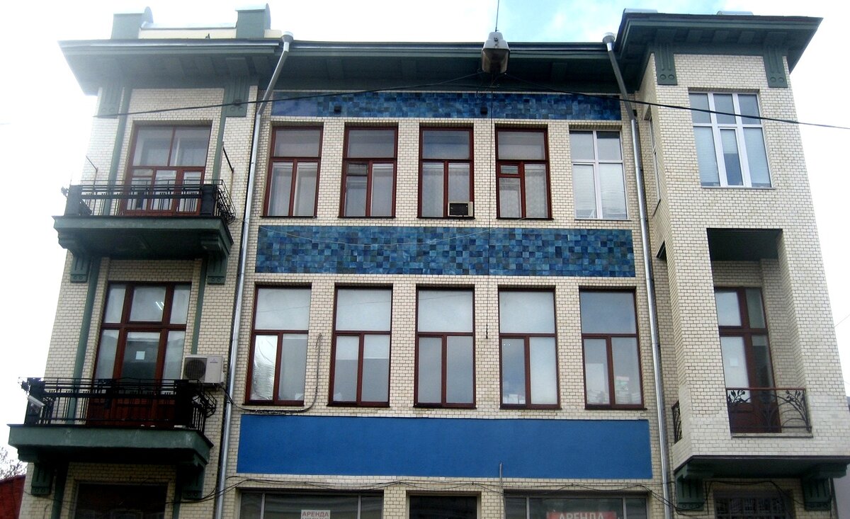 Общее впечатление создается геометрической правильностью плоскостей, строгостью и четкостью линий. Рациональный модерн! Автором проекта стал уже знакомый нам талант-самородок Яков Ушаков-Решетников, которому отсутствие специального образования и здесь создало препятствия. Полиция, как и прежде, взявши под белы ручки, выводила со стройки архитектора, не имеющего диплома и права на проектирование – но ловкий заказчик нашел выход, назначив Ушакова просто «управляющим всеми делами с самыми широкими полномочиями».