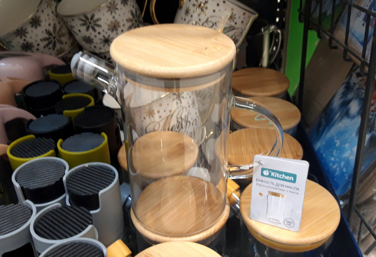 Доброго времени суток. Кто куда, а я в Фикс Прайс. В разных отделах появились новинки. Хочу показать Вам всё, что приглянулось. Начну с посуды и кухонных принадлежностей. ☃️ Первое, что бросилось в глаза - ёмкость для масла O'Kitchen, 560 мл. Цена 249 рублей. Рассчитана на температуру от 0°С до 100°С. Ёмкость можно использовать не только для масла, но и как заварочный чайник. ☃️ Термобокал O'Kitchen, 465 мл - 249 рублей. У бокала двойные стенки, долго сохраняет температуру напитка. Кофе со сливками или чай с ягодами в этом прозрачном бокале будут смотреться особенно эффектно. ☃️ "Ледяные" тарелочки Pasabahce буду весьма оригинальны в сервировках. Тарелочки глубокие, диаметр 20,2 см. Цена 79 рублей. Можно использовать в посудомоечной машине и в микроволновке. Страна изготовитель - Россия. ☃️ Появились керамические кружки с терморисунком, 330 мл, 149 рублей. Кружка меняет рисунок, е ли налить в неё горячий напиток. Когда содержимое остынет, рисунок становится прежним. ☃️ Набор баноче
