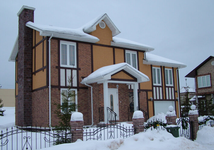 Изменения начинаются уже с конструкции фундамента. Если в Канаде используют мелкозаглублённый ленточный фундамент или утеплённую монолитную плиту, то у нас под домом обязательно должен быть «обитаемый» подвал, желательно с гаражом, при входе — усиленная дверь (вместо ажурной остеклённой, как принято в Канаде), а на окнах решётки, что приводит к необходимости значительно усиливать проёмы.