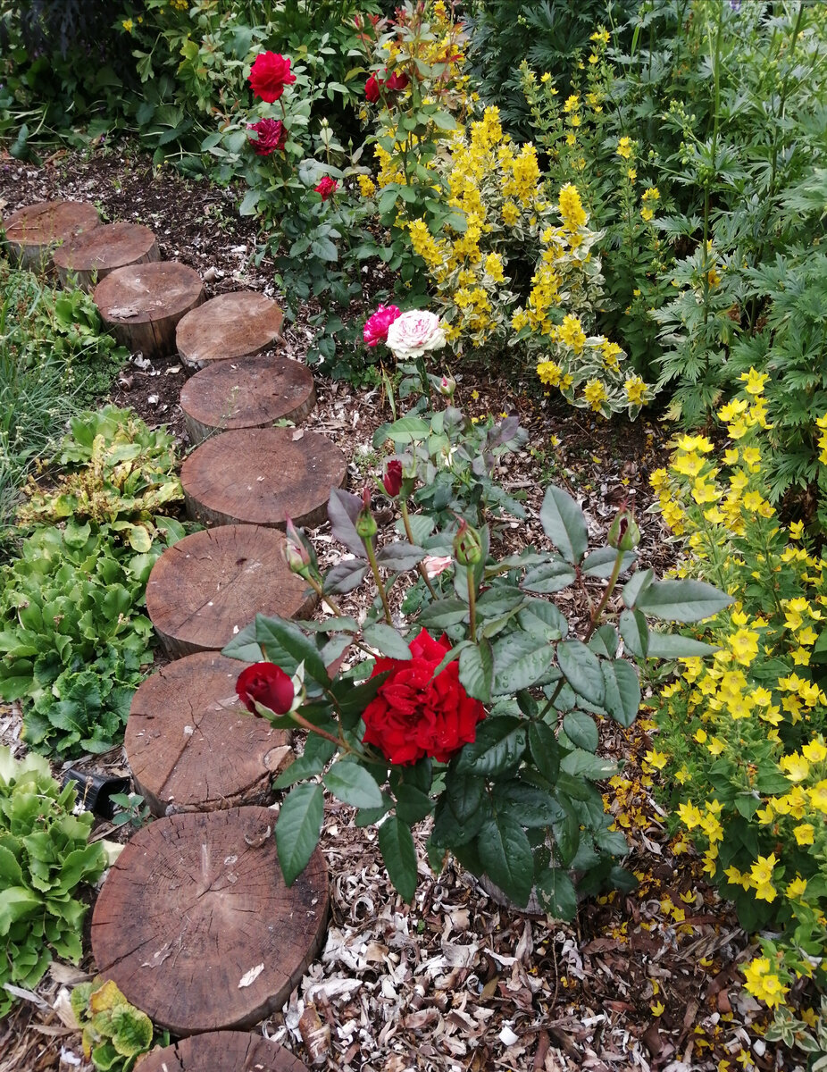 Розы высажены. Пришло время для подбивки розового узора. Чем? Да всем, что ляжет на глаз. Скребсти по сусекам не требуется, ибо были куплены гортензии, аж восемь кустов. В пылу каталожного помутнения разума, оный не отдавал себе отчёт о совершаемых действиях. Куплены? Получены? Пристраивайте! А нам то что, небо ведь не в клеточку, а цельным полотнищем на головой сияет. Вольному воля, идём пристраивать. Так как, в ленте с розами, было достаточно места для восьми кустов, то они туда и зашли. Алгоритм действий практически не менялся, но один нюанс добавился. В этот раз глиняный раствор обогатился грибной кашей и цеолитом. К грибной составляющей мы ещё вернёмся, попозже. Для чего, от чего, по какому принципу, с какими целями. Пока просто высаживаем в приготовленные ямы новоиспечённых гостей, с корнями, побывавшими в глиняно-грибном растворе. Могу только добавить, что каждая ямка выстелена бумажным ингредиентом: для тепла, для питания, для скорейшего образования микоризы, с которой горт