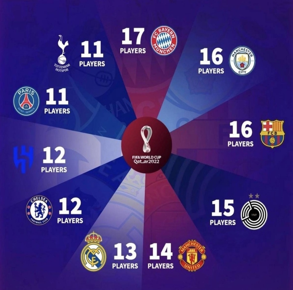 - Клубы с наибольшим количеством представителей на Чемпионате мира: