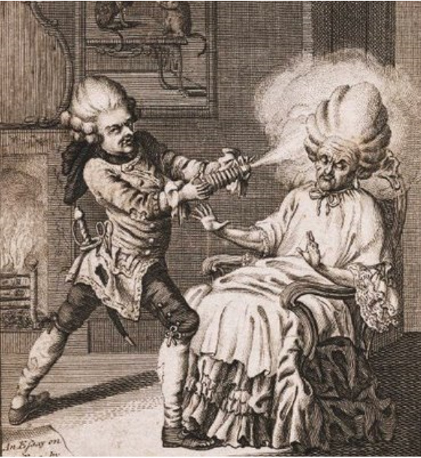 В прошлой статье мы немного поговорили об одежде галантного века, а в этой статье порадуемся, что мимо нас прошли и другие аспекты галантной жизни. Перейдем к косметике. Про свинцовые белила не писал только ленивый, поэтому повторяться не будем и поговорим о пудре. Пудрой посыпали все. Делали из рисовой муки (часто подкрашенной, она заменяла краску для волос) и тратили ОЧЕНЬ много. Были даже изобретены специальные комнаты для нанесения пудры, колпаки и тот самый пеньюар, как способ уберечь от ее излишков дорогущее платье. Пудра создавала модный вид, но не прибавляла красоты. Поры забивались от неуемного использования, кожа быстрее старела, да и выглядело это на наш вкус весьма специфично. Впрочем, таким был и весь макияж. Марфушечку-душечку помните? Ну так вот - это оно и есть! Красные губы и щеки (дорогая краска делалась из кошенили, это такие жучки), черные брови и обязательная мушка на щечке. Еще одна проблема - зубы. Ибо портились, и быстро. А зубы это больно. Даже сейчас. Но это т