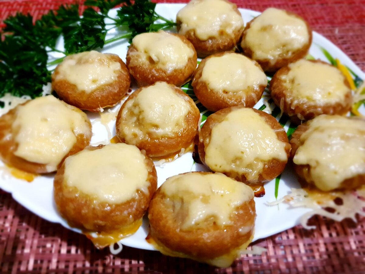 Всем привет! Предлагаю простой и недорогой рецепт оригинального блюда. Получается очень сытно и о-о-очень вкусно. Это блюдо очень нравится и взрослым, и детям. И вам понравится! А впрочем, попробуйте сами его приготовить. И готовится это блюдо так же легко и просто, как съедается, а времени на готовку тратится совсем немного. 🗒Ингредиенты: (Количество порций: 4) Для обмазки: 🧑🍳Приготовление: 1. Сушки заливаем молоком и оставляем на 25 минут. Даем им хорошо набухнуть. 2. Лук и чеснок чистим, мелко режем. 3. Зелень промоем, тоже мелко режем. 4. В фарш добавляем лук, чеснок, зелень. 5. Добавляем соль, перец и хорошо перемешиваем. 6. Достаем баранки и раскладываем их на противне, на который предварительно постелили пергаментную бумагу. 7. Формируем из мясной начинки небольшие шарики и помещаем их в отверстия сушек. В каждую сушку кладем фарш. 8. Каждую фаршированную сушку окунаем с одной стороны в смесь с для обмазки. 9. Отправляем в духовку, разогретую до 180 градусов, на 20 минут. 10