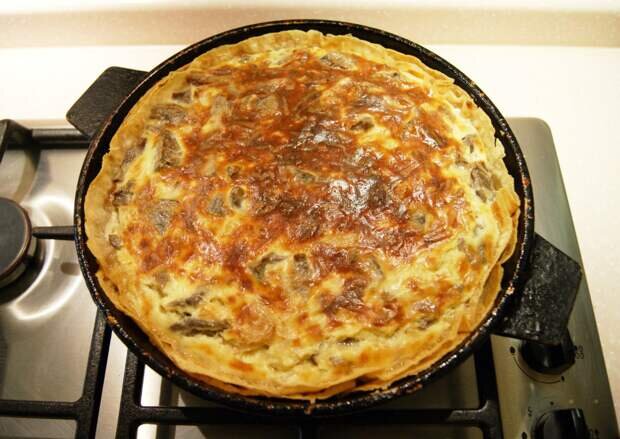 Очистив рыбу, изрежьте на куски и посолите. Часа через два вытрите рыбу, чтоб она была суха и чтоб соли на ней не оставалось. Поджарьте рыбу в масле, прибавив маленечко мелко искрошенной лимонной корки. Потом положите грибов, всыпьте немного тертой булки или сухарей, влейте с ½ ст. бульону и дайте всему этому порядочно кипеть вместе с рыбой. После того вымажьте маслом жестяное (или серебряное) блюдо, вылейте в него весь этот соус с рыбой, прибавьте немного крошеной лимонной корки и, если любите, немного мушкатнаго цвета (или ореха), и сделайте из сдобного теста крышку, прикрепив к краям блюда, помажьте тесто яичным желтком и поставьте в печь. Когда тесто до половины спечется, вырежьте маленькое отверстие в корке, чтоб паштет не лопнул, и оставьте в печи, пока не спечется совершенно. Между тем сделайте соус: вбейте в кастрюлю три или четыре желтка, влейте немного винного уксусу, всыпьте немного пшеничной муки, перемешайте хорошенько, положите порядочный кусок (по пропорци