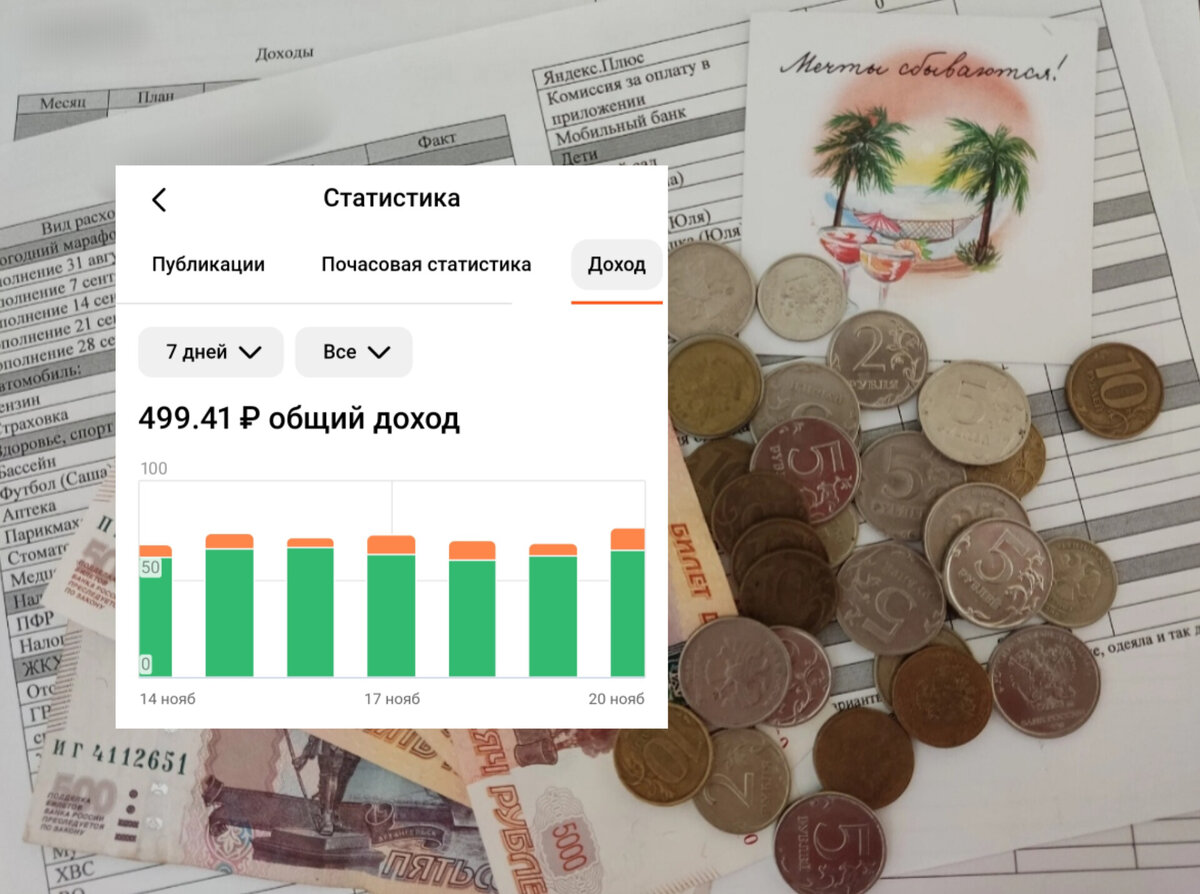 Заработала 500 рублей за неделю. Монетизация канала с 14 по 20 ноября 2022 года