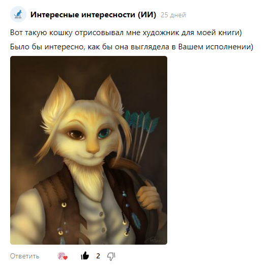 Привет! Я в кой-то веки созрела и принесла вам ваших персонажей! Заранее хотелось бы кое-что прояснить - если тут нет вашего персонажа, это не значит, что он какой-то не такой. Я выбрала наиболее приглянувшихся и интересных, на мой взгляд. У вас у всех прекрасные подопечные! ❤❤❤❤ Поехали! (∪.∪ )...zzz Взялась за эту кошечку и поняла, что не вывезу. Не могу рисовать фурри и гуманоидно подобных существ - хоть то со мной делайте. Пришлось импровизировать и наделять более человеческими чертами кошечку. В итоге вышла просто девушка - с ушками и хвостом. Честно, очень сильно намучилась и поняла, что больше животных и фурриподобных рисовать не буду. Просто не могу. Не получается. Надеюсь, автор этой кошки-воительницы (ха-ха) меня тапком не прихлопнет. Но я на всякий случай убегу! Σ(っ °Д °;)っ