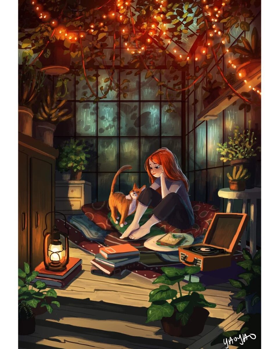 У всего есть свои плюсы и минусы. Кого-то напрягает, если он долго является одиночкой, а кто-то наоборот получает от этого удовольствие. Но как например в первом случае бывают моменты из разряда "А когда живешь один, то можно иногда лениться?! Как хорошо!", то и во втором случае бывают ситуации вроде "Так, окей, я приготовила много вкусного, а угостить некого...". То есть, какой бы путь человек не выбрал, легкий налет сомнения в правильности выбора, или даже небольшой зависти к тем, кто живет иначе - присутствует. Но это не значит, что человек жалеет о своем выборе (по крайней мере не во всех случаях), просто всем нам кажется, что чужая трава зеленее. И это нормально. Нужно просто понять, что какой бы путь ты не выбрал, у него будут свои приятные стороны, но будут и последствия. При любом выборе придется работать над собой и окружающими людьми. Даже при втором варианте жить в полной изоляции не получится. Ну а сегодня собрала подборку потрясающих артов от художницы из Китая, котора