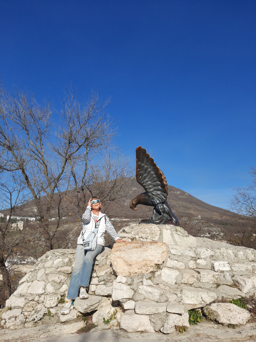 В Пятигорске весной я была три раза. Но и сегодняшняя поездка доставила массу удовольствия. Это был прекрасный день во всех отношениях. Полежать на куче дубовых листьев оказалось таким соблазном, что не смогла удержаться от этого. Ездили мы впятером-наша компания в полном сборе. Аллочка прилетела утром! Электричка из Ессентуков идёт минут 20. Билет стоит 51 рубль. В Пятигорске мы сразу к Цветнику отправились. Туда можно на автобусе номер 1. А можно на трамвайчике. Номер 1, 3 или 5. Билет на трамвай стоит 23 рубля. Я обожаю эти маленькие Пятигорские трамваи. Там свободнее, чем в автобусе. И как-то так неторопливо и мило. Выходит сам водитель и обилечивает пассажиров, а потом ведёт трамвайчик. И по улицам трамвай идёт, где много старинных домов. Целая экскурсия получается Пятигорск сегодня выглядел ярко. Синее небо украшали. На его фоне всё казалось нарядным. Конечно Цветник выглядит намного скромнее, чем в мае, когда всё цветёт. Но все равно очень симпатично и интересно там.