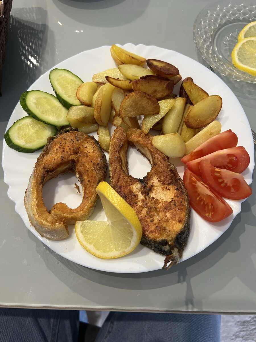 Попробуй приготовить эту безумно вкусную рыбку! Стейк из форели на сковороде - крайне простое, но в то же время очень полезное блюдо, содержащее кладезь витаминов и минералов, полезных для организма. Готовится это блюдо довольно быстро, особенно, если за основу взяты уже готовые нарезанные рыбные стейки. Ингредиенты: -Форель (стейки) 2 шт -Сок лимонный (свежевыжатый) - 1 ст. л. -Чёрный молотый перец - 1 ч. л. -Соль - 1 ч. л. -Гарнир и украшения по вкусу. Как приготовить "Стейки из форели на сковороде" 1.Стейки форели промойте и обсушите бумажными полотенцами. 2.Натрите стейки перцем и солью. 3.Полейте соком лимона, оставьте мариноваться на минут 5-10. Долго не маринуйте рыбу в соке цитрусовых, до 10 минут будет достаточно. Форель сама по себе рыба жирная, поэтому не стоит лить масло на сковороду, достаточно просто этим самым растительным маслом смазать поверхность, чтобы рыбка не пригорела к ней. Выкладывайте стейки на раскаленную сковороду, обжарьте с каждой стороны по 3-4 мину
