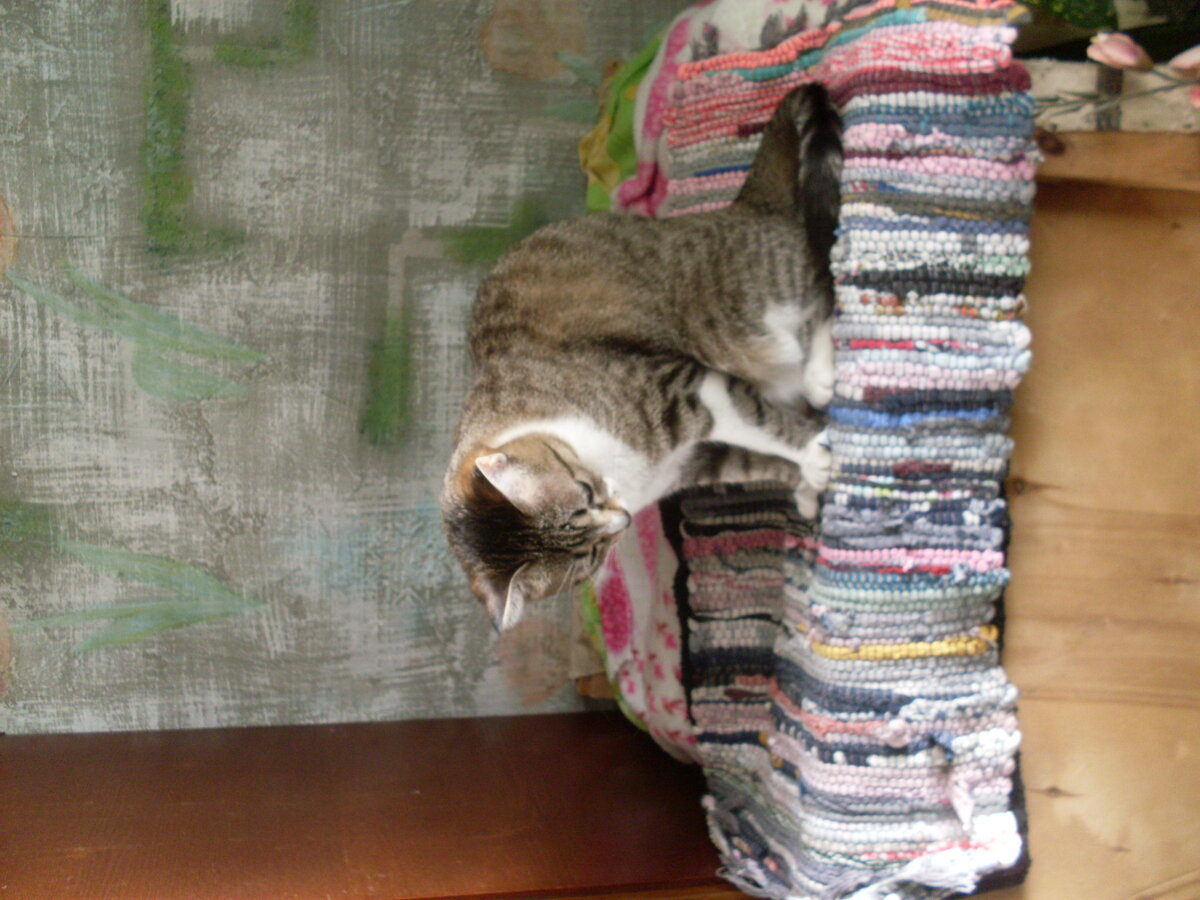 Старая полутора-спальная кровать досталась от мамы. Я ее обтягивала сверху материалом двунить как заплатка и пользовалась еще долго. Я думала ее выбросить, но сие было мне не по силам. Слишком тяжелая. И я решила ее распилить. Основание - доски пошли для поделок. А подушку от кровати я распилила на три части. Некоторое время я думала, может сделать из них сиденье? И вот решила их обтянуть заново. Но что-то решила переделать: Доска, которым крепятся пружины отдельно, пружины отдельно, ватин отдельно как матрац, а чехол отдельно, чтобы можно было снимать для стирки. Все отдельно. Старый материал обтяжки оставила, некоторые куски от него были еще целы, постирала. И вот что у меня получилось. Затем из материала старый белый советский хб пододеяльник разрезала на четыре части, сшила чехлы для ватина, чтобы сделать три матрасика. Но материал был проношенный в некоторых местах и потому пришлось сшить из нового материала еще один чехол. Простегала большой иглой и нитками хб, чтобы ватин не сб