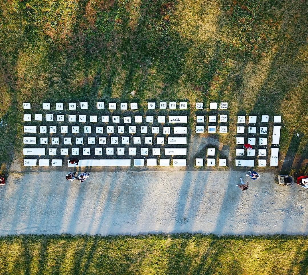 В Екатеринбурге, на берегу реки Исеть находится интересный арт-объект – Памятник клавиатуре. Идея построить такой памятник впервые пришла в голову художнику Анатолию Вяткину. У него появилась идея сделать этот объект на мотивы восточных ландшафтов из камней. Проект был реализован в 2005 году, теперь на улице Горького, 14 а прохожим открыт для посещения новый арт-объект. Памятник клавиатуре был сделан из прочного материала – бетона, он состоит их 140 блоков, вес их варьируется от 80 до нескольких сотен килограмм. Вес пробела достигает 500 кг. Работа была сделана в масштабе 30:1, площадь памятника 16 метров на 4 метра, интервал между буквами – 15 см. За основу расположений клавиш была использована раскладка «QWERTY/ЙЦУКЕН». За шесть лет существования Памятника клавиатуре было украдено несколько кнопок вандалами: F1, F2, F3 и Y. На кнопке Windows был нарисован логотип Apple, тогда предложили клавиатуру перевезти в Перьм, где власти обещали охранять ее от вандализма. Вопреки этому, 17 авгу