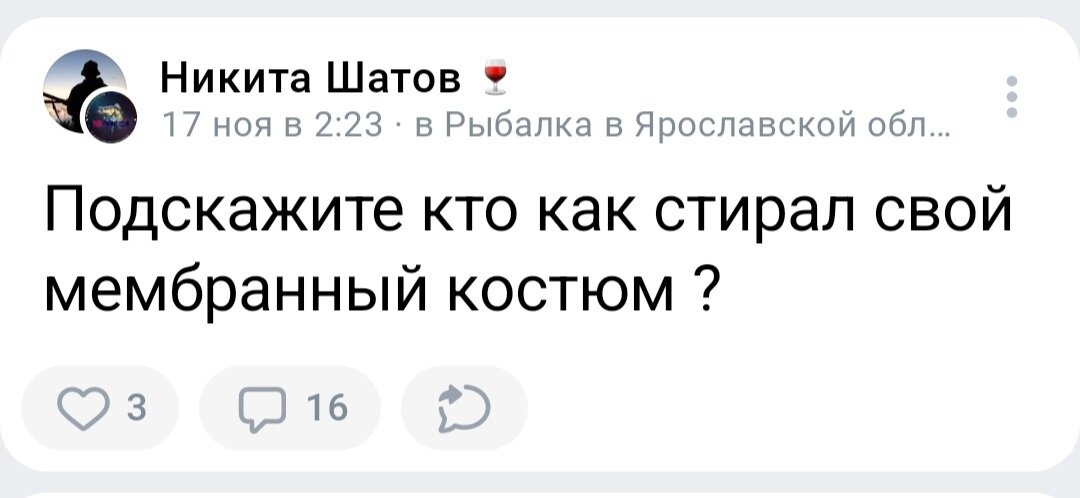 Мембранный костюм не только дорого и круто при покупке, не только не продуваемо и сухо на рыбалке- но еще и проблемно при стирке и уходе... Таких вопросов , как выше, очень много, как в личных сообщениях, так и на различных тематически форумах, особенно с началом зимы. 😀 Как ухаживать за мембранным костюмом Для начала скажу, по моему сугубо личному мнению, лучший уход за мембранным костюмом- вообще ничего с ним не делать.😁 В чем проблема мембранного костюма- уход за мембраной. Я ранее писал про именно мембранный костюм- это костюм, где к ткани-основе изнутри подклеен особый материал- мембранная пленка. Так вот основная проблема: как постирать костюм не испортив или не нарушив мембранную пленку. Она очень тонкая и хрупкая, если вы начнете ткань грубо мять, тереть, тянуть - то очень велика вероятность нарушения целостности пленки, либо отклейки пленки от ткани... Поэтому важно стирку производить очень аккуратно , помня об этом. Ну и вторая особенность : мембрана- особый материал с по