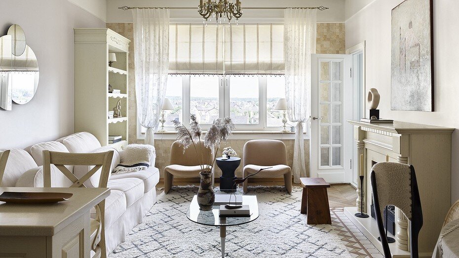 Стилистика классического загородного дома с множеством натуральных материалов, природных цветов — основа интерьера квартиры. Аутентичный декор разных эпох из Испании, Туниса, Марокко привносит разнообразие, шарм и немного восточного настроения.