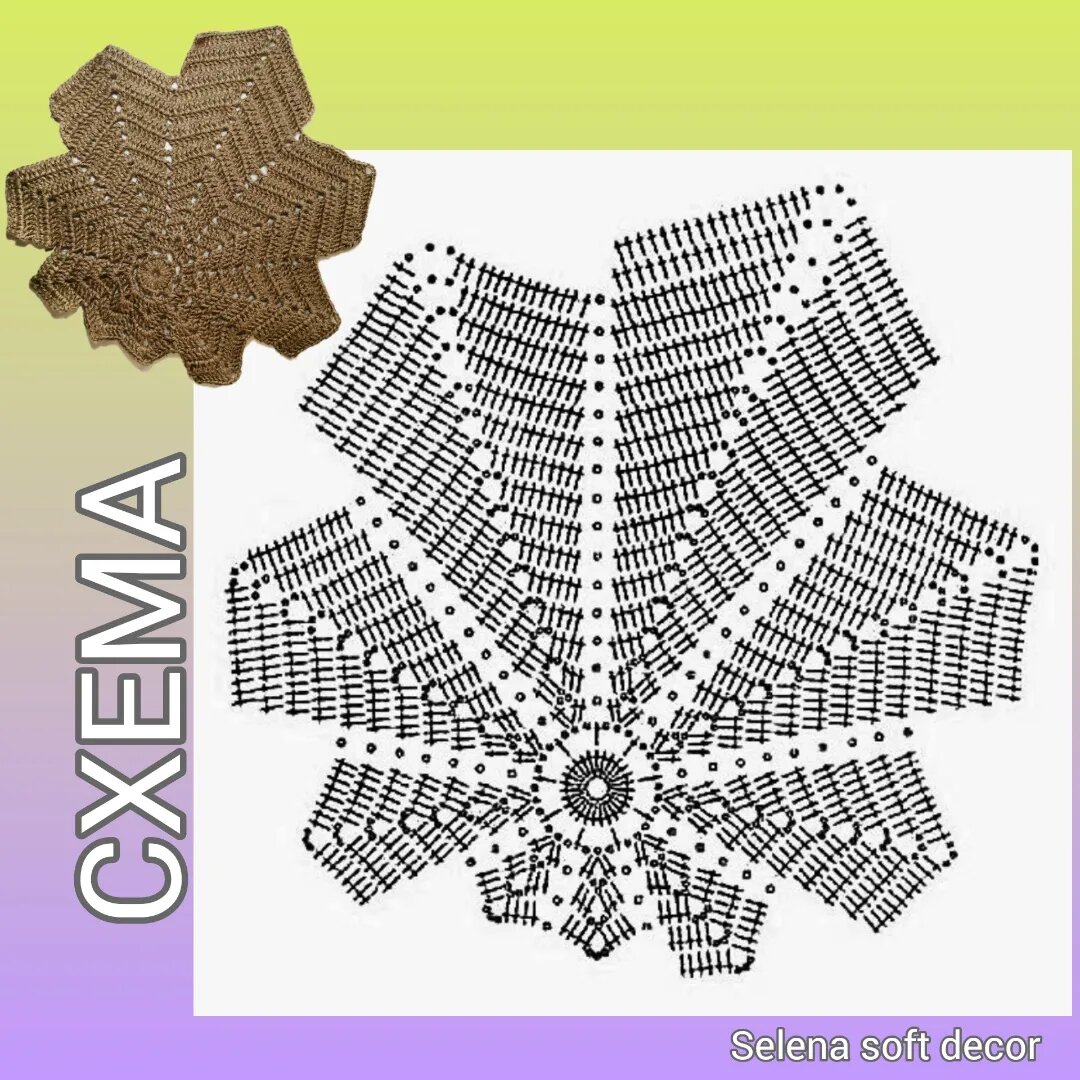 Приветствую вас, мои дорогие подписчики! Недавно связала салфетку, в форме кленового листа. Очень интересно получилось! Вязала из джутовой нити. Но можно использовать любой материал, который вы любите.. Вязала по этой схеме. Всё было мне понятно. Делюсь с вами! Схема вязанной крючком салфетки "Кленовый лист".