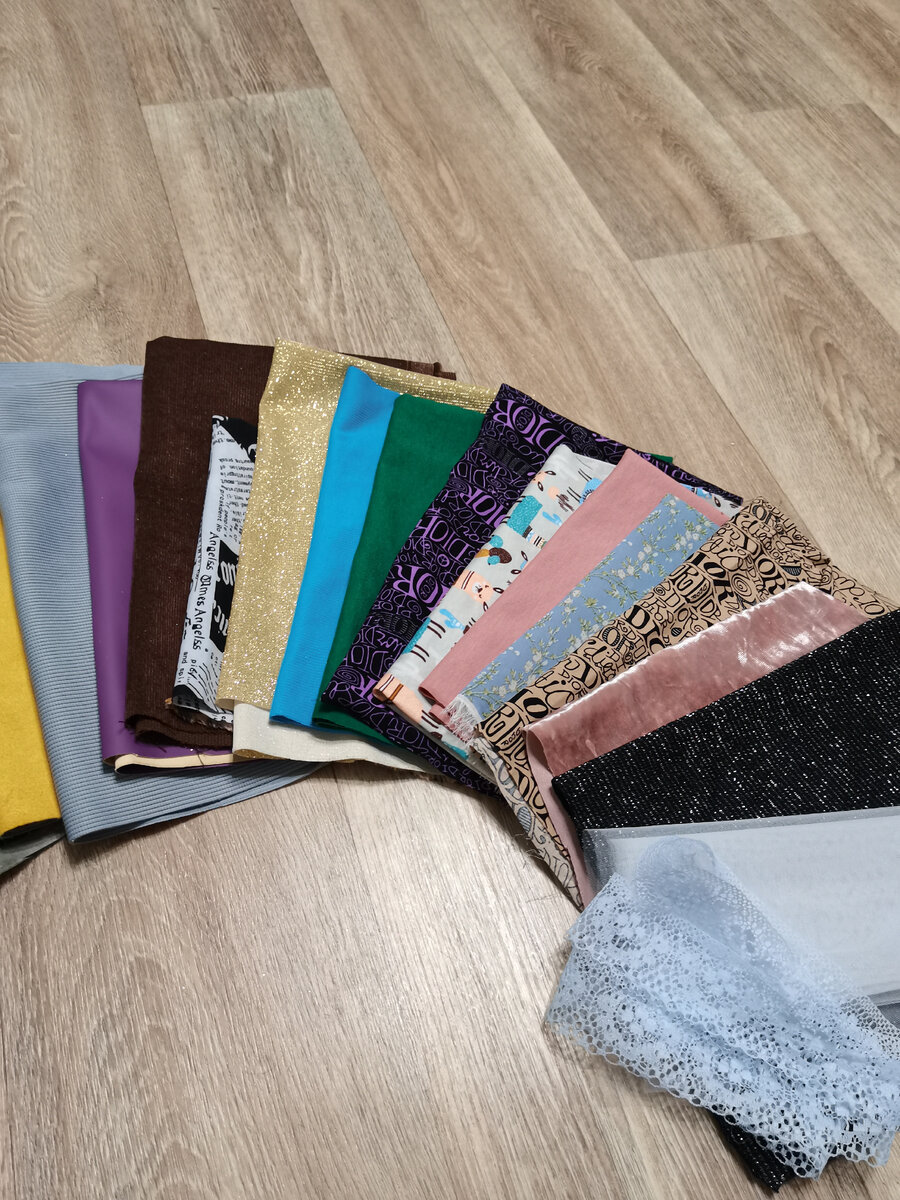 Я как-то рассказывала, сколько денег я потратила на свое хобби. Сегодня показываю вам на что я потратила деньги. На первом фото замша, кожа, трикотаж кашкорсе, ниагара, штапель, бархат, шифон, кулирка, плащевка, джинс и др. Покупала тут. Во второй подборке тканей видно трикотаж с блеском, который я использовала для комбинезона Тамики. На третьем фото ткань барби, замша, вельвет, атлас, креп шифон, трикотаж, джинс и плащевка. Барби, джинс и плащевку покупала для пальто, брюк, юбок. Атлас и креп шифон на платья, блузки. Ссылка на продавца. Ниже на фото кож зам, ниагара, замша, плащевка, габардин, бязь, сороченная ткань и джерси трикотаж. Светло-бежевую плащевку я уже использовала на плащ для Лины. Очень удобно, что продавец режет любой метраж) На пятом фото кожзам, ниагара, джинс, штапель, трикотаж джерси, плащевка, габардин. Это первая партия тканей. Сначала я присматривалась к качеству, чтобы знать, что можно покупать, а что нет. Пока шила только из кожзама, ниагары и плащевки и ос