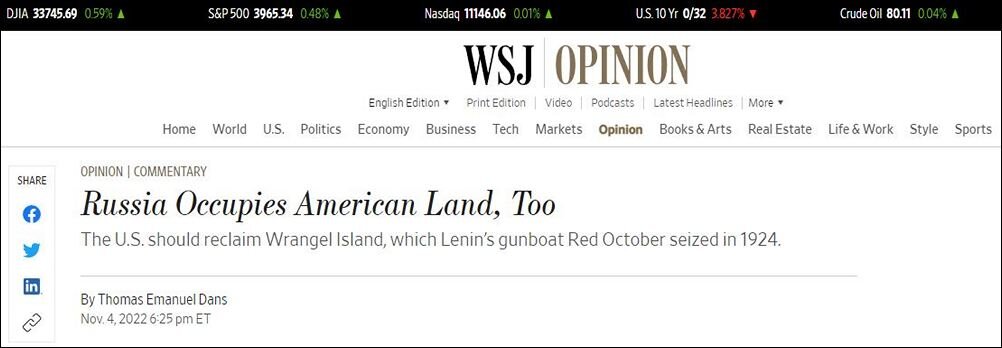 "Россия оккупирует американскую землю. США должны вернуть себе остров Врангеля, который в 1924 году захватила ленинская канонерская лодка «Красный Октябрь»."