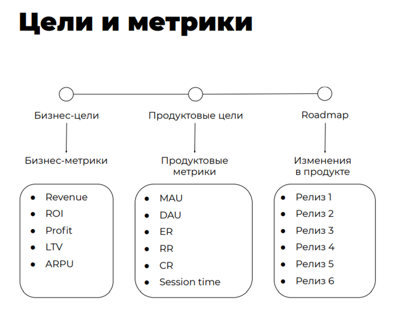 Есть продуктовая цель с помощью, которой мы должны достичь бизнес - цели.