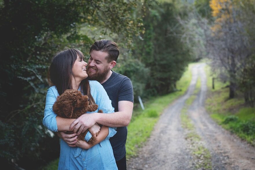 Фотосессии пар с детьми пользуются большим спросом среди фотографов. А что же делать парам, которые пока не готовы к рождению малышей, но хотят организовать интересную фотосъемку? Предлагается принять участие в шуточной, но в то же время милой и теплой фотосессии. Молодые пары часто любят заводить домашних питомцев. Поэтому на время, пока малыши не появились в семье, можно устроить фотосессию с животным. Но не в классическом виде, а представить, будто собака или кошка и есть ребенок. Таким видом съемки можно позлить родственников, которые давно ждут внуков и удивить оригинальными фотографиями подписчиков в социальных сетях. Для фотосессии можно найти реквизит, который используется для уходом за детьми: бутылочки, соски, пеленки и шапочки. ВАЖНО, чтобы собака не сопротивлялась в этом деле. Но, думается, хозяева смогут найти подход к питомцу. Интересно будет смотреться карусель из двух кадров в социальных сетях: первое фото – стоит любящая пара с коляской на прогулке. А следующий к
