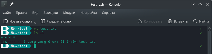 Приветствую тебя авантюрист. Сегодня мы продолжаем знакомство с правами доступа к файлам и каталогам. В предыдущей статье я рассказал о работе с владельцами. Настоятельно рекомендую с ней ознакомиться перед прочтением этой статьи (https://dzen.ru/a/YyYUPGiNZSrL1CWU). Итак, у каждого объекта файловой системы Linux (файл, каталог, процесс, принтер и т.д.) есть 3 разрешения доступа: чтение (r – read), запись (w – write), исполнение (x – execute). Эти разрешения задаются для владельца, для группы владельца, для остальных пользователей. К примеру, мы можем выставить права таким образом, чтобы владелец имел полный доступ, а все остальные не могли даже прочесть объект, и наоборот. В целом такая «простая», на первый взгляд, система дает неплохие возможности и на деле можно настроить довольно гибкие политики доступа. Давайте создадим файл и посмотрим какие у него будут права по умолчанию. Для создания я использую редактор vi. Я авторизован под пользователем "zerg", поэтому владелец и группа вл