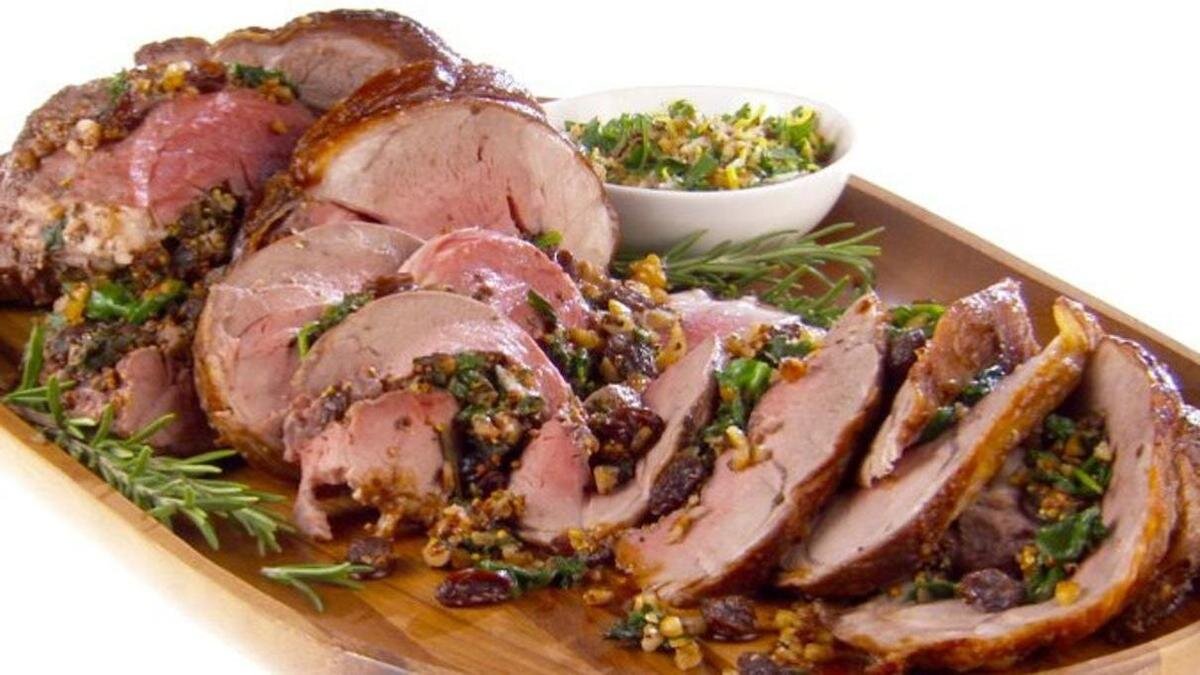 Всем Привет!Рада приветствовать Вас на моём канале! Сегодня представляю вашему вниманию очень смелое и вкусное решение-Баранья нога фаршированная изюмом и орешками. Для приготовления этого великолепия вам потребуются следующие ингредиенты: Приготовим: Баранью ногу промыть, обсушить, удалить лишний жир.Сделать надрез по кости с внутренней стороны.Удалить одну бедренную кость по суставу. От середины к краям раскрыть мясо как на рулет. Нижнюю кость зачистить на половину.Киви очистить,пробить блендером в пюре.Чеснок очистить нарезать ножом как вам нравится.Изюм замочить в кипятке на 15 минут, воду слить изюм промыть.Орехи нарубить крупно.Зелень промыть обсушить.нарезать.Одну столовую ложку меда соединить с паприкой,отставить -это для того, чтоб обмазать ногу перед запеканием.В миске соединить орехи,изюм,мёд,чеснок и зелень,перемешать.Ногу с наружи и внутри посолить поперчить,специи втереть в мясо.Внутри ногу обмазать пюре из киви и оставит на час.Затем взять ногу и зафаршировать орехами и