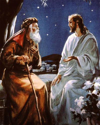 “Никодим говорит Ему: «Как может человек родиться, будучи стар? Неужели может он в другой раз войти в утробу матери своей и родиться?» Иисус отвечал: «Истинно, истинно говорю тебе: если кто не родится от воды и Духа, не может войти в Царство Божие. Рождённое от плоти есть плоть, а рождённое от Духа есть дух. Не удивляйся тому, что Я сказал тебе: должно вам родиться свыше. Дух дышит где хочет, и голос его слышишь, а не знаешь, откуда приходит и куда уходит. Так бывает со всяким, рождённым от Духа». Никодим сказал Ему в ответ: «Как это может быть?» Иисус отвечал и сказал ему: «Ты учитель Израилев и этого ли не знаешь? Истинно, истинно говорю тебе: Мы говорим о том, что знаем, и свидетельствуем о том, что видели, а вы свидетельства Нашего не принимаете. Если Я сказал вам о земном, и вы не верите, как поверите, если буду говорить вам о небесном?»” (Ин. 3:4–12).