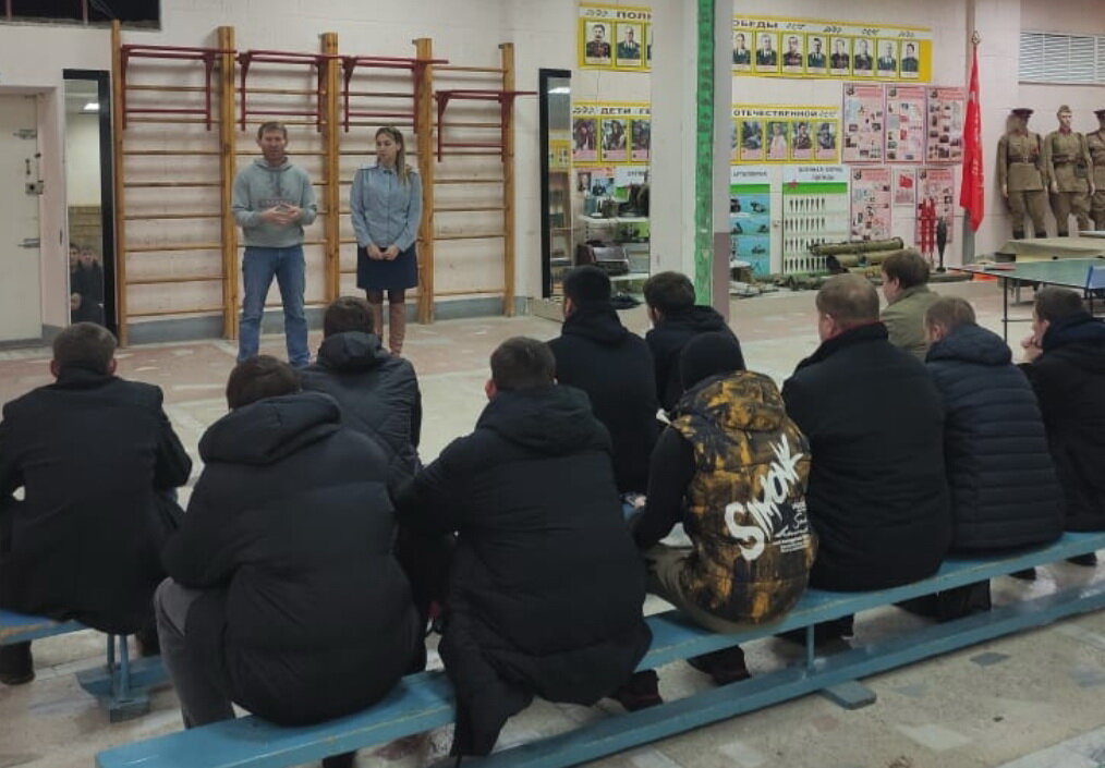 Сотрудники Краснокаменского межмуниципального филиала УИИ УФСИН России по Забайкальскому краю организовали встречу осуждённых, состоящих на учёте филиала, с руководителем военно-патриотического клуба «Зарница» Виталием Кутеповым.