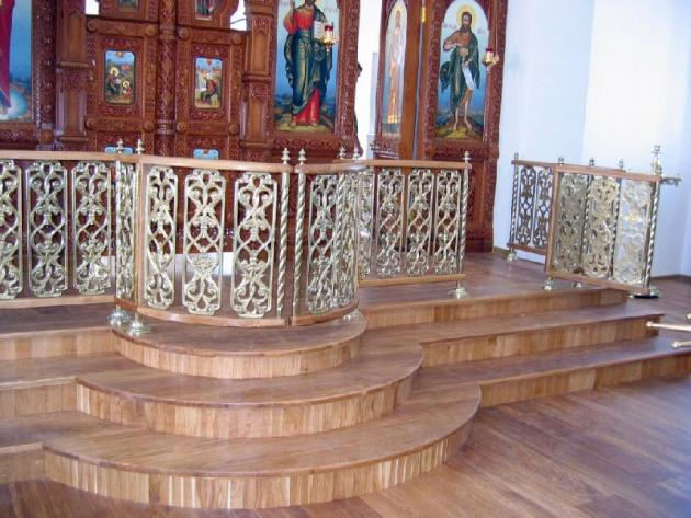 Довольно часто на краю солеи строят низкий решетчатый металлический узорчатый заборчик, за которым находится на солее свободное пространство. Оно используется в определенных моментах богослужения. Это пространство в церковном обиходе получило название «солея», в церковнослужебной практике часто говорят «выходим на солею». Хотя, в принципе, солея – это всё возвышение, на котором стоит алтарь. За данным пространством стоит иконостас, отделяющий визуально среднюю часть храма от алтаря. Это, как правило, высокая перегородка, в которую определенным образом вставлены много икон. Поэтому само слово «иконостас» переводится как «образ и место». Т. е. место для образов, икон. В храмовом богослужении иконостас символизирует собой духовное Небо – Царствие Небесное, где пребывают Господь, Пресвятая Богородица, Ангелы и святые.