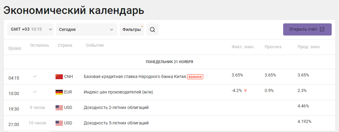Наступившая неделя на глобальных рынках будет скомканной из-за Дня благодарения в четверг и последующей "черной пятницы", при этом уход американских инвесторов на праздник будет предварять публикация в среду вечером протоколов последнего заседания ФРС, по итогам которого регулятор повысил ставку на 75 базисных пунктов, до диапазона 3,75-4,00% годовых. Рыночные дискуссии о возможном продолжении агрессивной политики ФРС по борьбе с инфляцией или же постепенном замедлении темпов повышения ставок уже привели к значительным изменениям котировок доллара в последние недели. В среду также будут опубликованы американские данные о заказах на товары длительного пользования за октябрь и перенесенные с четверга недельные данные о числе обращений за пособиями по безработице; выйдут предварительные ноябрьские показатели деловой активности США и крупнейших экономик Европы. =================================================== СМОТРЕТЬ ПОЛНЫЙ ЭКОНОМИЧЕСКИЙ КАЛЕНДАРЬ