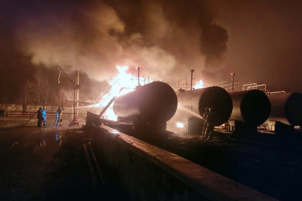В результате обстрела ВСУ Макеевки в ДНР произошел пожар на нефтебазе, расположенной на ул. Антропова в Червоногвардейском районе. По данным МЧС ДНР, возгорание произошло сегодня, 21 ноября, в 4.06. Предварительно, загорелись цистерны с топливом объемом 70 куб.м., которые находились на железнодорожных путях за территорией нефтебазы, а также три стационарные цистерны, которые находятся в нескольких десятках метрах от железнодорожного полотна. На место сразу же были направлены экстренные службы. В ликвидации ЧП участвовали 20 единиц техники, 84 человека личного состава, а также пожарный поезд. В результате пожар был ликвидирован в 9:43 мск. Как уточнили в представительстве ДНР в Совместном центре по контролю и координации вопросов, связанных с военными преступлениями Украины, ВСУ выпустили по Червоногвардейскому району Макеевки 3 снаряда натовского калибра 155 миллиметров.