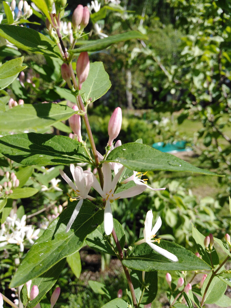 Ярко-оранжевые ягоды на жимолости татарской появятся в первой половине июля.