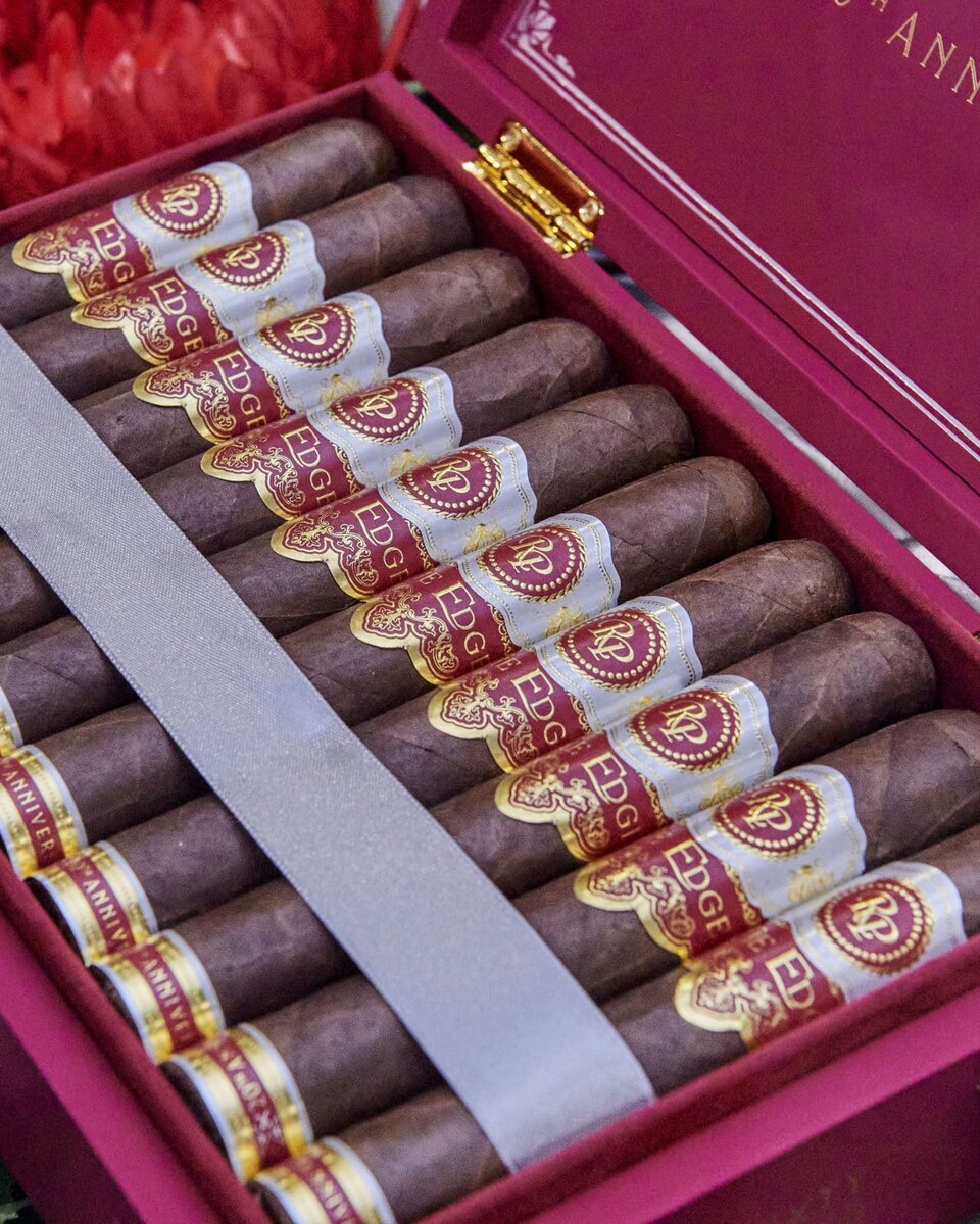 The Edge 20th Anniversary поступит в продажу в трех форматах 20 лет назад, в 2002-м, Рокки Патель решил создать крепкую многогранную сигару для опытных курильщиков. На разработку секретной смеси ушли годы, линия получила название The Edge и появилась на рынке в 2004 году. Патель для продвижения новинки придумал оригинальное оформление. Первоначально сигары числом 100 штук были помещены в грубо сколоченные деревянные ящики, которые выглядели так, словно их только что достали из старого сарая. Сигары продавались без бумажных колец, их стоимость была всего 5 долларов за штуку. Маркетинговый ход сработал, The Edge имели большой успех. Насыщенный пряный аромат и длительное послевкусие пришлось многим курильщикам по вкусу. Со временем появились новые размеры и смеси табаков, выросла цена. Сегодня The Edge имеют 7 форматов и сигарные банты, они по-прежнему популярны, это один из самых востребованных продуктов Rocky Patel. Чтобы отметить успех, Патель выпустил юбилейную серию The Edge 20th Ann