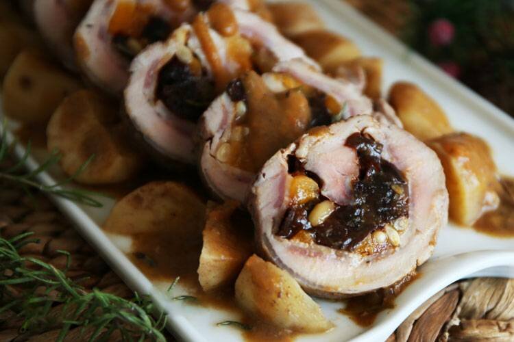 Свиная вырезка фаршированная сухофруктами и орехами на новогодний стол