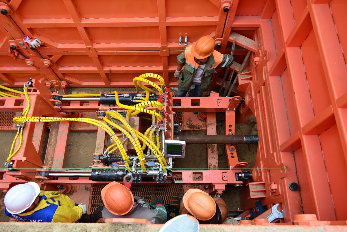 Большинство Заказчиков оборудования МНБШ-600 рассматривают эту установку как шнековую машину, которая позволит им выполнить высокоточное горизонтальное бурение, проложить стальную трубу диаметром до 720мм в соответствии с проектном уклоном. И это, безусловно, основная задача, которую должна решать МНБШ-600, однако, это далеко не все ее возможности! Сегодня МНБШ-600 - это многофункциональный комплекс, который позволяет подземным строителям выполнять: 1. Высокоточное горизонтальное шнековое бурение с продавливанием сварной стальной трубой. Максимальный диаметр трубопровода - 720мм, максимальная длина бурения - 80 метров. Контроль направления бурения осуществляется лазерной системой СЛК-01. 2. Высокоточное горизонтальное шнековое бурение с продавливанием обсадными трубами (раструбное, несварное соединение) и затяжкой на их место труб ПНД. 3. Высокоточное пилотное горизонтальное бурение с продавливанием стальной трубой без выборки грунта шнеками. 4. Управляемый в плане и профиле прок