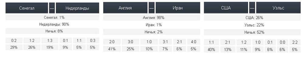 Девять из десяти участников конкурса прогнозов чемпионата мира-2022 на pressball.by считают, что сборная Нидерландов победит в игре против сборной Сенегала. Лишь 1% верит в викторию африканцев в матче первого круга группы А. Самый популярный счет, который предполагают прогнозисты — 2:0 в пользу подопечных Луи Ван Гала. Игра состоится в 19:00 по минскому времени. Во второй игровой день чемпионата мира по футболу-2022 поединки пройдут и в группе В. Так, в 16:00 начнется матч Англии и Ирана, а в 22:00 сразятся сборные США и Уэльса. Специальный бонус всем новым клиентам fonbet.by — фрибет 30 BYN + 30 фриспинов по промокоду BALL. Регистрируйтесь с промокодом BALL, пополняйте счет всего на 2 BYN и получайте увеличенный фрибет в мобильном приложении для ставок на спорт (ЧМ по футболу, теннис, НХЛ, КХЛ и НБА). ЧМ-2022. Как закончится центральный матч понедельника Сенегал — Нидерланды?