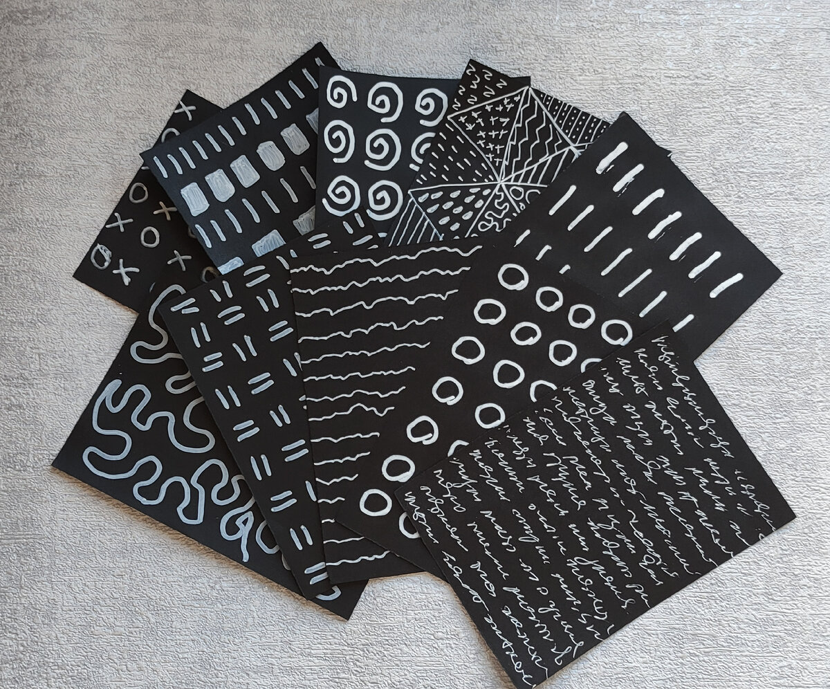Сегодня опять работа, и чтобы не вышло так же как с утра достала чёрную бумагу и белые маркеры. Бумага - тонкая бумага, как для принтера, только чёрная. Купила в канцелярском магазине за 5 р. за лист. Поэтому по возвращении домой просто посвятила 30 минут разным меткам разными маркерами. Заодно сравнила несколько различных белых маркеров, как оказалось у меня их набралось несколько видов. Когда будет неделя белого цвета, обязательно сделаю сравнительное видео. Бумага меня очень порадовала. Надо будет взять ещё, если есть.