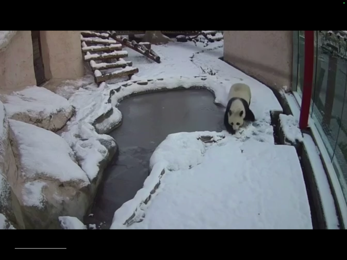 В Московском зоопарке большая панда Жуи радуется зиме и снегу.