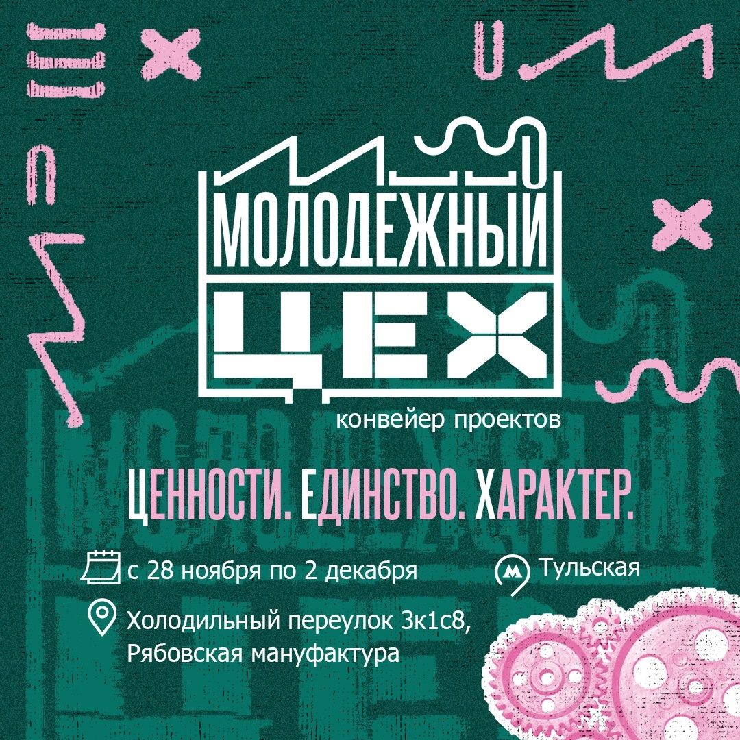 С 28 ноября по 2 декабря с 14:00 до 18:00 проектный офис «Молодежь Москвы» при поддержке Комитета общественных связей и молодежной политики города Москвы проведет просветительское мероприятие для студентов – конвейер проектов «Молодежный ЦЕХ». Конвейер проектов – это интерактивная программа для студентов столичных вузов. В программе мероприятия запланированы: нетворкинг-сессии, интерактивная квест-игра «Знакомство с космосом», презентация деятельности Комитета, ярмарка проектов, карьерные консультации. Регистрация на мероприятие доступна по ссылке. Дата: 28 ноября-2 декабря с 14:00 до 18:00 Место проведения: г. Москва, Холодильный пер., д. 3, корп. 1, стр. 8 (Рябовская мануфактура)
