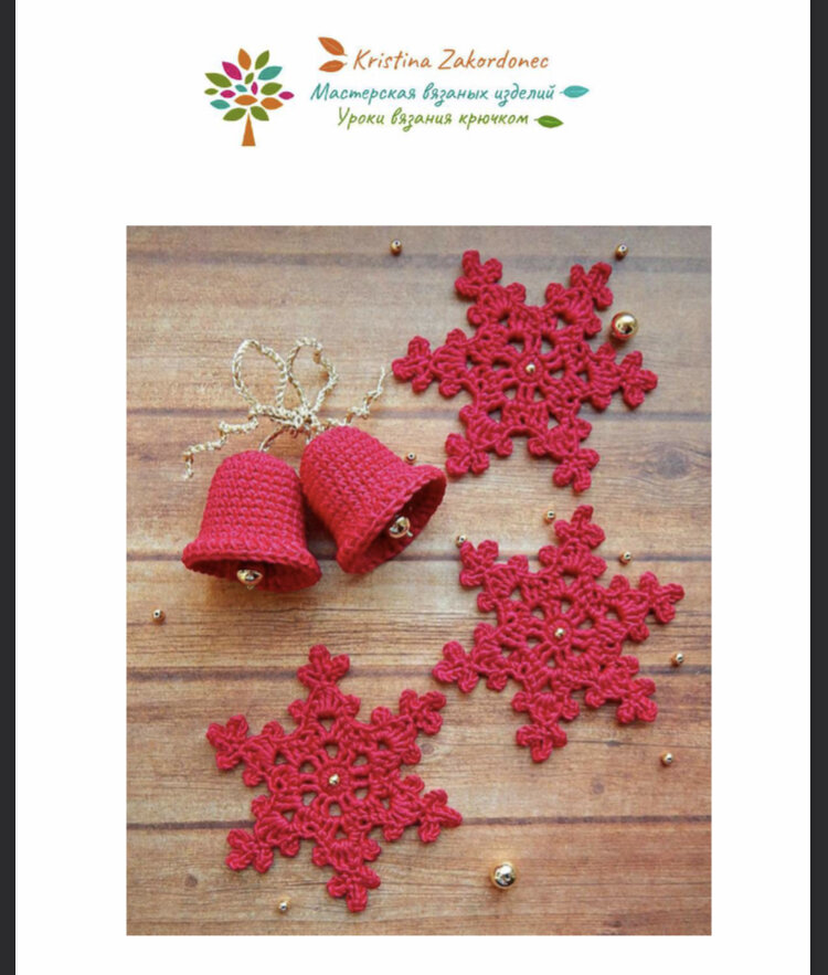 Бесплатный мастер-класс от Кристины Закордонец по вязанию снежинок и колокольчиков крючком. Диаметр вязаной снежинки примерно 9 см, диаметр колокольчика около 4 см. Для изготовления новогоднего декора автор использовал хлопчатобумажную пряжу "Цвета моды" с плотностью 190м/75г и крючок 2 мм. Вязаные снежинки и колокольчики помогут украсить ваш дом к Новому году.