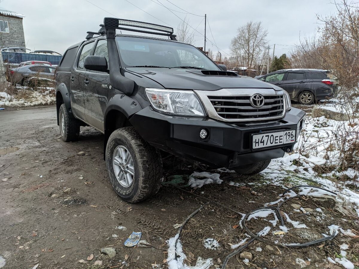 Нашему тюнинг-ателье 4X4TUN.RU в последнее время везет на пикапы, а особенно на Тойоты Хайлаксы. Но, как правило, это свеженькое поколение Revo. А вот предыдущее Vigo бывает у нас сравнительно реже. И зря! У нас есть, что предложить одним из самых массовых пикапов в мире! И вот небольшой пример. Эта Toyota Hilux Vigo буквально приползла к нам - подвеска настолько устала, что стоковые колесики чуть ли не клинили в передних арках. Теперь же посмотрите - места в арках стало столько, что шины увеличенного размера так и просятся на взбодрившийся и возмужавший пикап. Как мы этого добились? Сейчас расскажем. В передней подвеске были установлены наши крепкие надежные амортизаторы-стойки Stone Belt в паре с отличными пружинами нашего собственного изготовления 4x4tun с лифтом +2 дюйма и допнагрузкой +150 кг. С задней подвеской все предельно просто - мы добавили удлиненные серьги рессор с лифтом те же 5 сантиметров (2"). Силовой бампер РИФ со светодиодным дополнительными фарами в кот