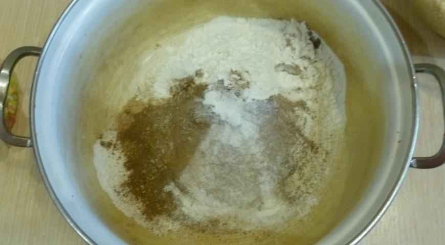 ИНГРЕДИЕНТЫ Для крема: Для пряников: Для соленой карамели: Для торта: ПОШАГОВЫЙ РЕЦЕПТ ПРИГОТОВЛЕНИЯ Шаг 1 Приготовьте тесто для имбирного торта. Все сухие ингредиенты просейте через мелкое сито в большую миску и аккуратно перемешайте венчиком или просто кулинарной лопаткой. Шаг 2 В другой большой миске вбейте миксером мягкое сливочное масло. Затем постепенно, небольшими порциями добавьте сахар. Взбивания не прекращайте. По одному добавьте яйца, после каждого тщательно перемешивая массу. Шаг 3 Молоко смешайте с цедрой, ванилью, патокой. Влейте в масляную смесь в 3 приема, перемежая 2-3 ст. л. сухой смеси. Всыпьте оставшуюся смесь, перемешайте до однородности. Тесто торта готово. Шаг 4 Разделите тесто имбирного торта на 2 части. Выложите в форму и разровняйте. Выпекайте при 180° 25-35 минут. Коржам торта дайте полностью остыть и каждый разрежьте на 2 пласта. Шаг 5 Приготовьте пряники для украшения имбирного торта. Сливочное масло нарежьте кубиками и поместите в ковшик. Добавьте сахар и