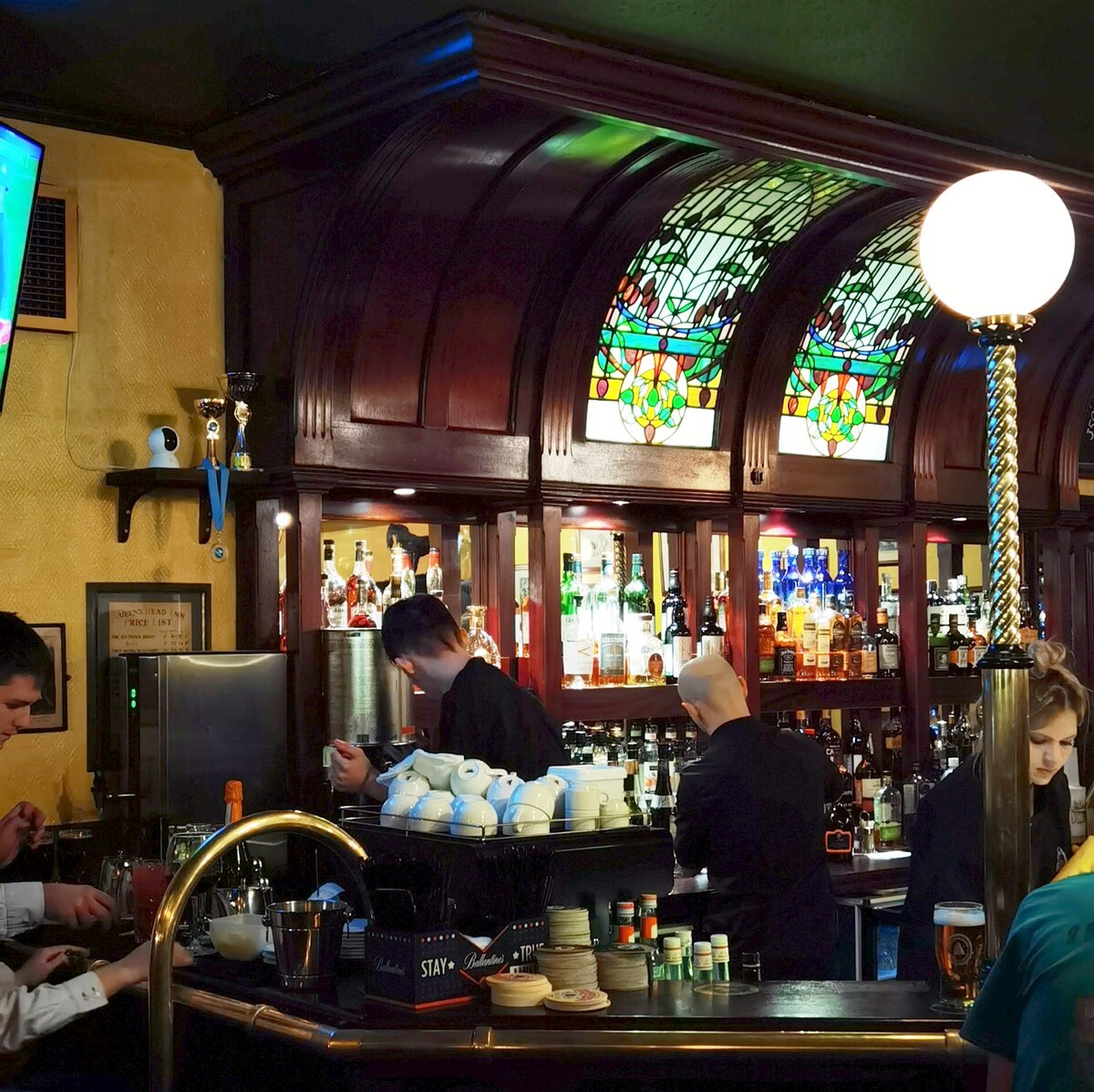 По вечерам, а уж тем более перед концертом здесь шумно, столик нужно бронировать заранее. Для паба слишком уж тихое музыкальное сопровождение, которое перебивается общим гулом голосов. Для меня это скорее минус - если не слышно, что за музыка играет, зачем она вообще нужна? Но в целом обстановка приятная, диваны удобные, для хорошей компании так вообще в самый раз. Меню - классическое для пивного бара и по наполнению и предлагаемым блюдам, ничего особенного за исключением нескольких блюд с фирменным наименованием.